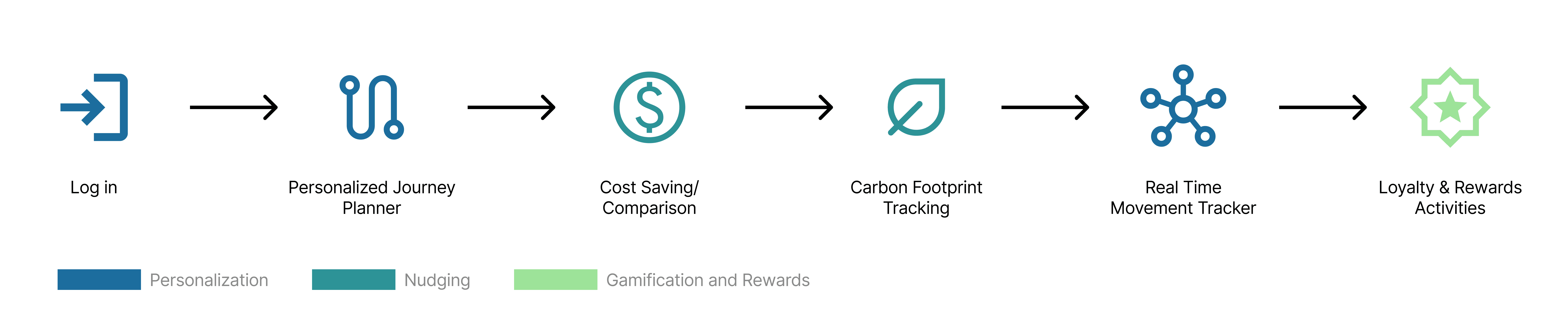 Backed by their own API, NK also came up with use cases of touchpoints that include "nudge design" to shift user behavior towards sustainable transportation choices through personalization, nudging, social aspects, gamifications and rewards.
