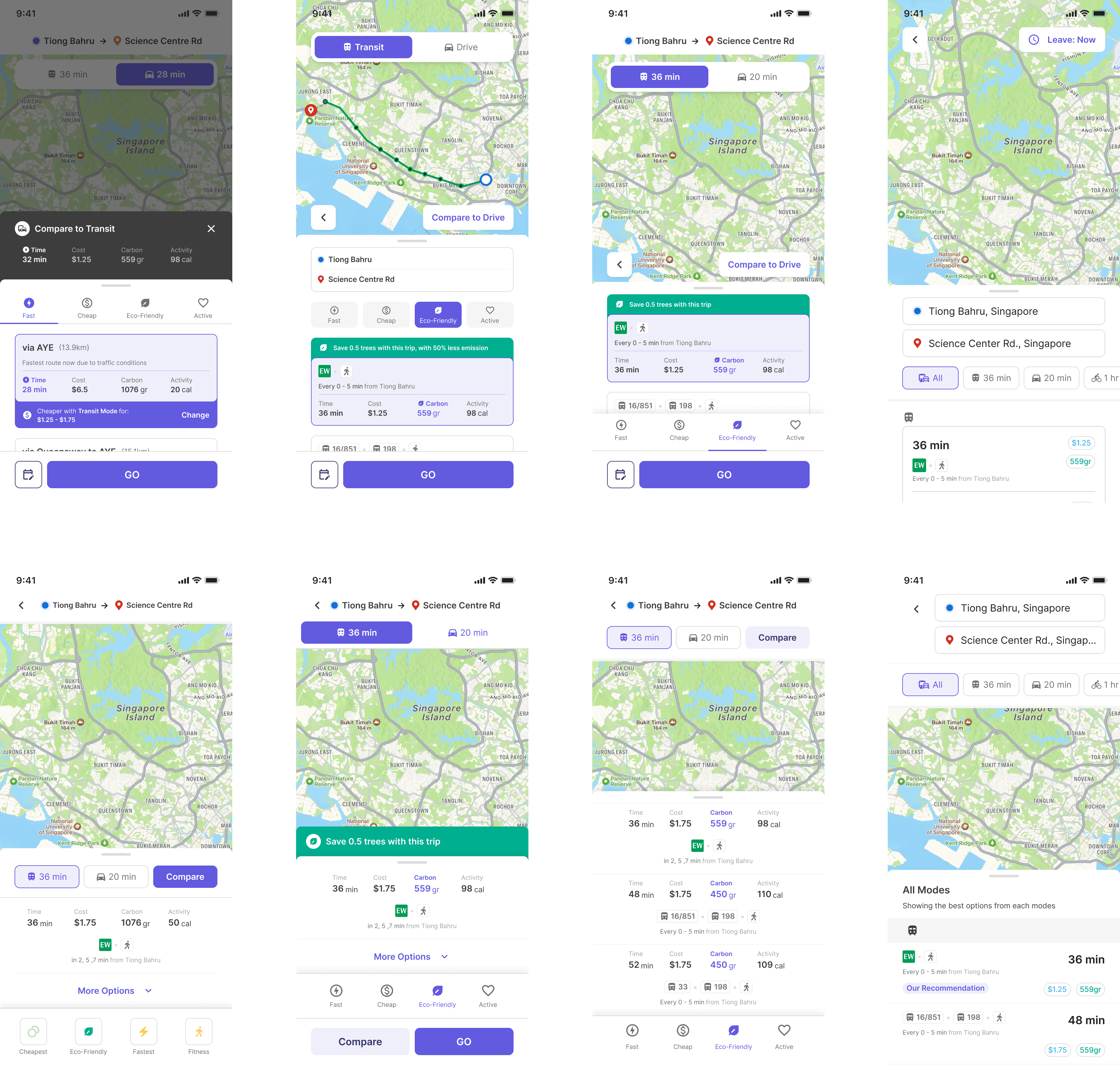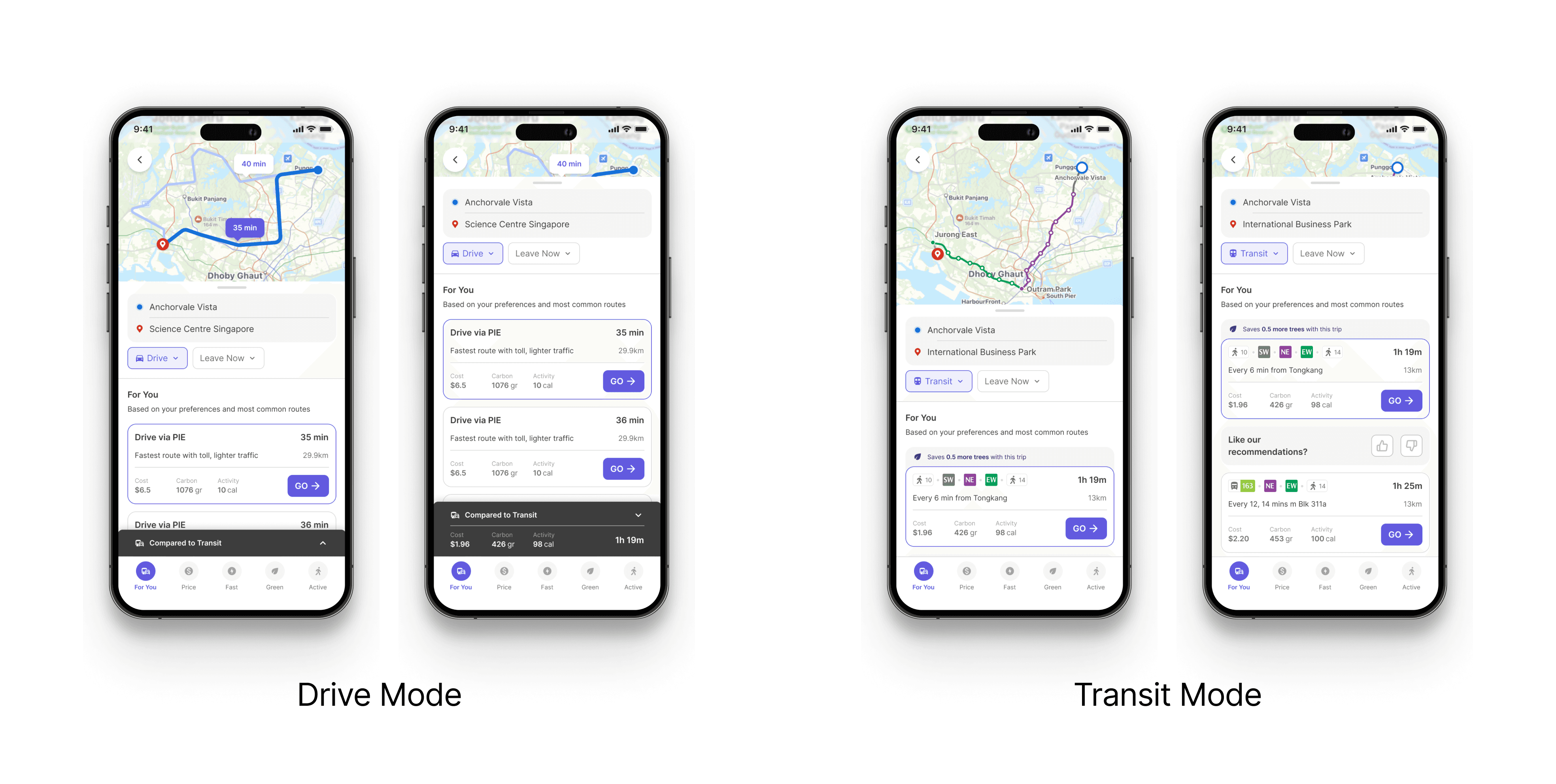 Before diving deep into the nudge component itself, we ensured that a good journey planner must effectively and successfully guide users to their destinations regardless of any nudge features. To support the framework, we also ensured that our recommendations were aligned with user needs and the on-ground situation in Singapore. Thus, we presented information in an easy-to-understand manner, striking a balance in its presentation.