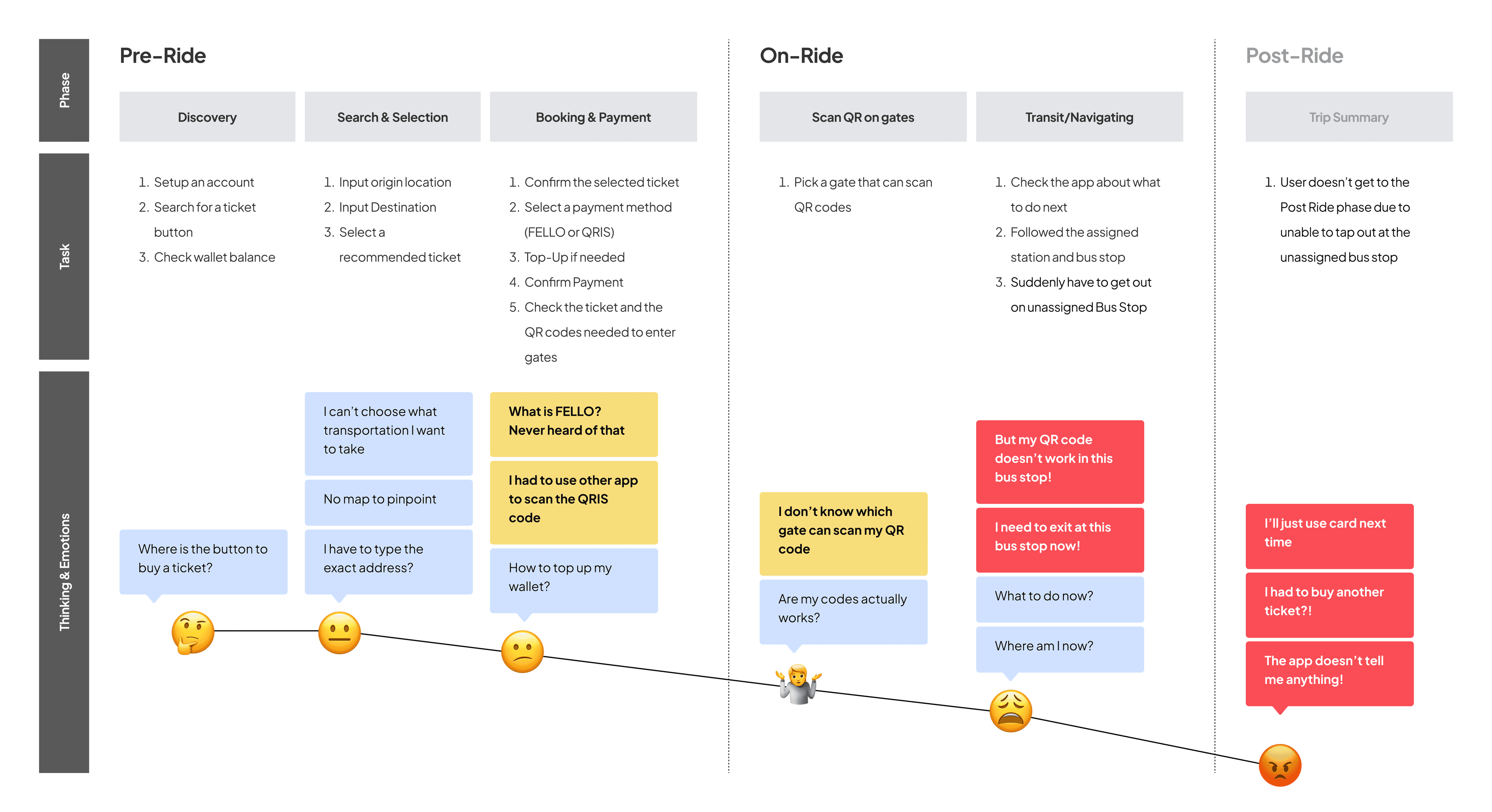 The research process itself is a long journey, as a beginner, I couldn’t prioritize what kind of research and what type of data that needed to make effective research, that’s why I used many research methods. But I enjoy the process of the research in public transportation industry, It forces me to consider not just the in-app situation, but also the on-ground situation on when user commuting.