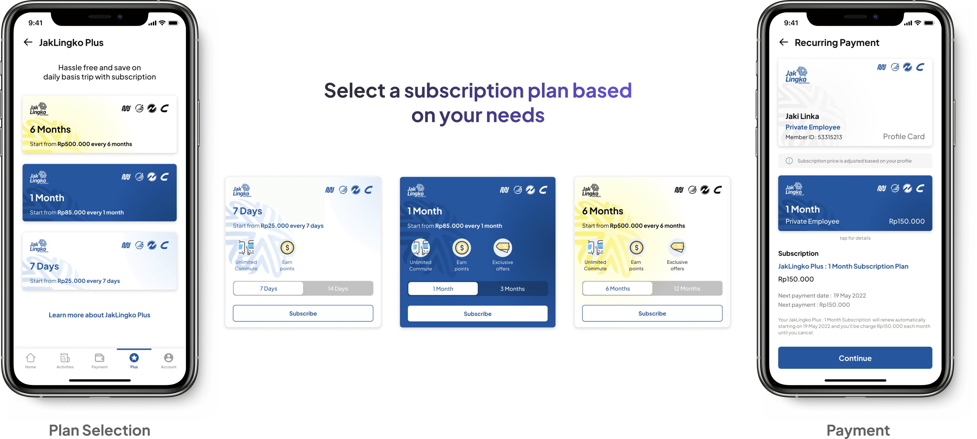 After that, purchase subscription from JakLingko Plus menu. Thanks to implemented account based ticketing (ABT), subscription available based on its duration and its compatibility with user’s connected account and profile.