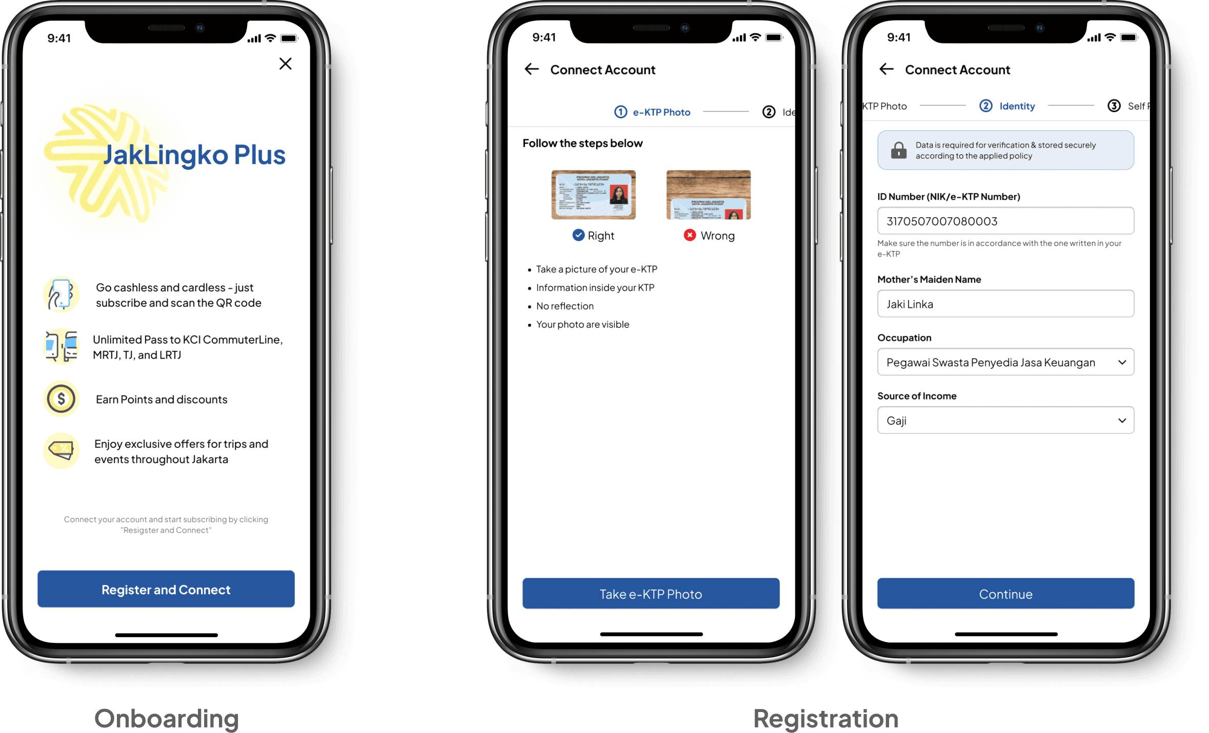 Connect user’s account to JakLingko Plus by filling a simple registration form, ID photos and self portrait. Get your profile card and the price determined for your profile.