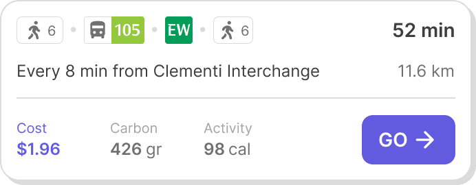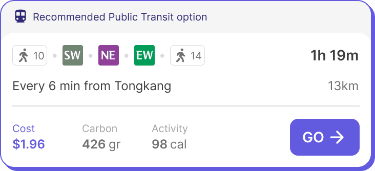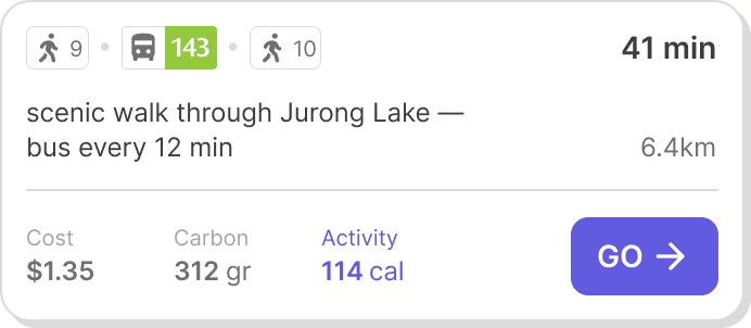 Our vision for OZONE was simple: in partnership with NK, we turned behavioral insights into strategic interaction points to build a journey planner that gently nudges behavior, so walking, cycling, or taking transit feels like the easier option.
