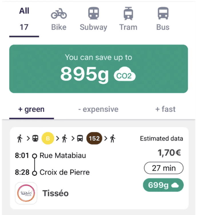 Designed to help users reflect on past trips and get gentle nudges toward more sustainable choices