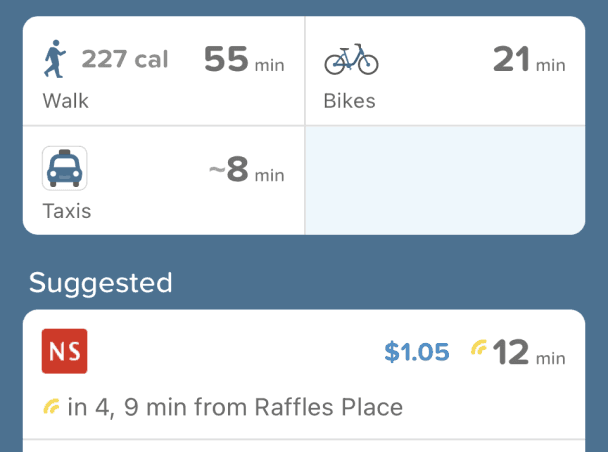 After users input their destination, they land on the route recommendation screen. This is where they actively decide between commuting options.