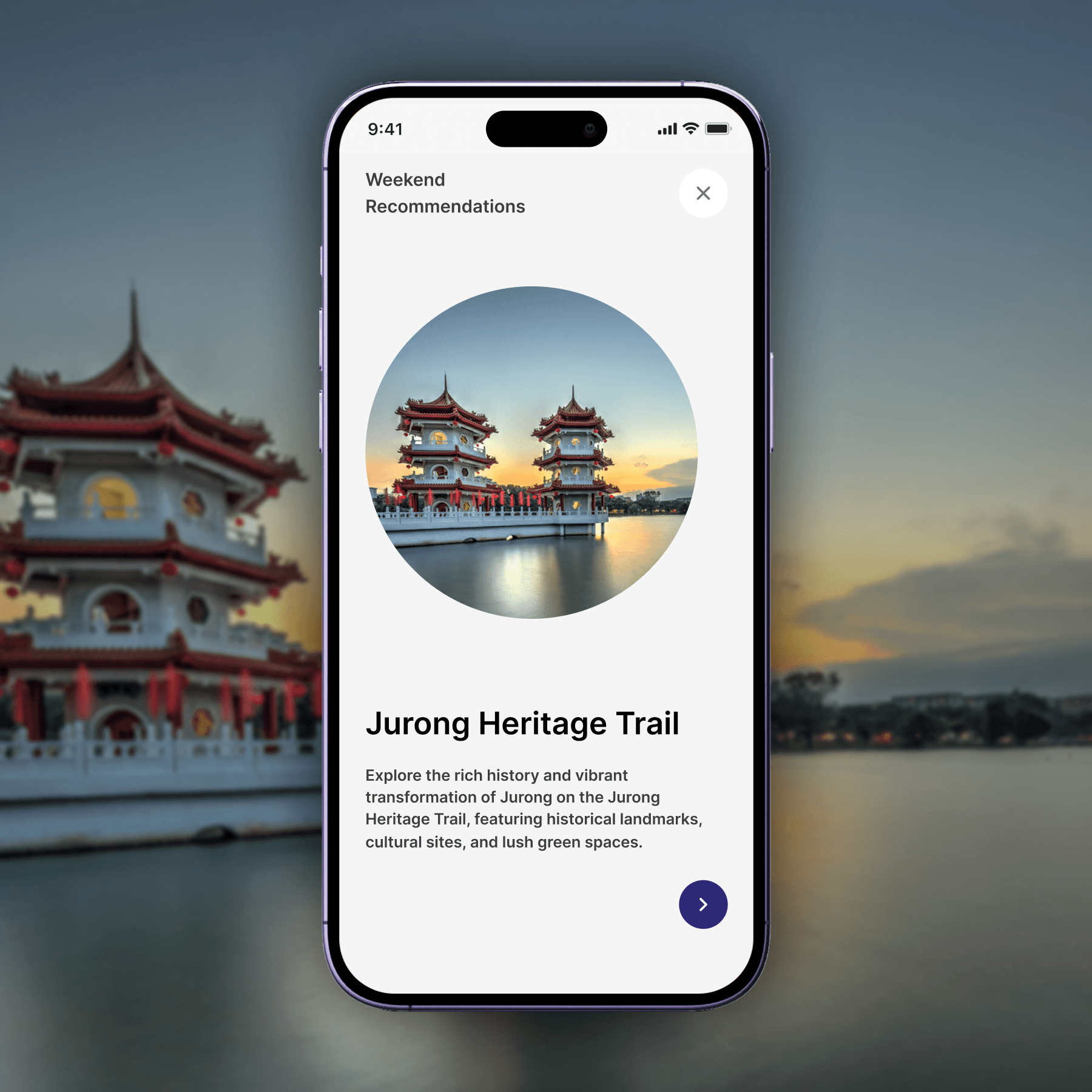 As a proof of concept, I integrated the Jurong Heritage Trail, one of Singapore’s official walking trails. I mocked up its route, checkpoints, and points of interest into a seamless, self-guided walking experience within the app. Users can follow the trail from point to point, with contextual information and visual cues that make the walk feel purposeful and informative.