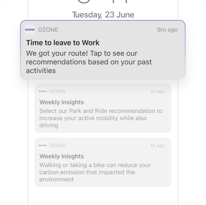 Our vision for OZONE was simple: in partnership with NK, we turned behavioral insights into strategic interaction points to build a journey planner that gently nudges behavior, so walking, cycling, or taking transit feels like the easier option.